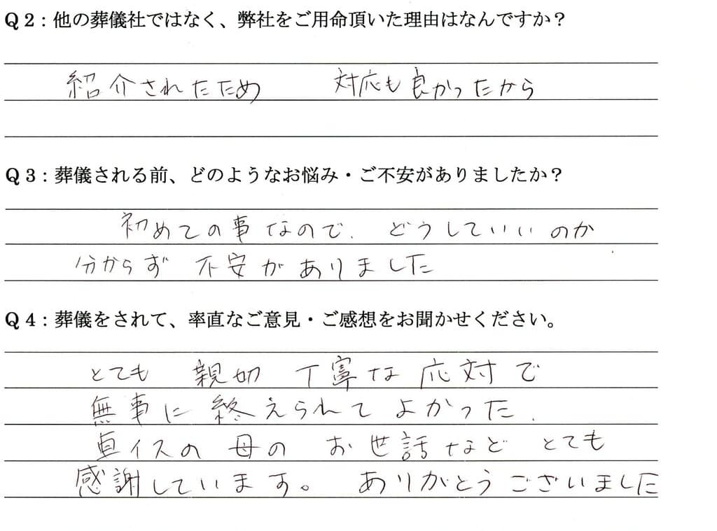 Q:他の葬儀社ではなく、弊社をご用命頂いた理由はなんですか。
