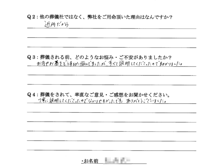 Q:他の葬儀社ではなく、弊社をご用命頂いた理由はなんですか。