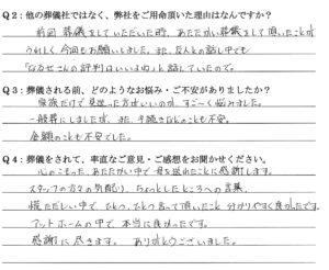 Q:他の葬儀社ではなく、弊社をご用命頂いた理由はなんですか。