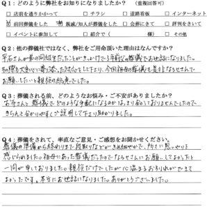 Q:葬儀をされて、率直なご意見・ご感想をお聞かせください。