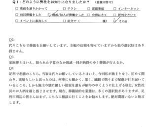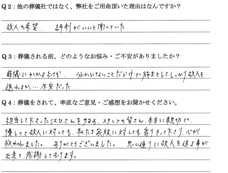 Q:他の葬儀社ではなく、弊社をご用命頂いた理由はなんですか。