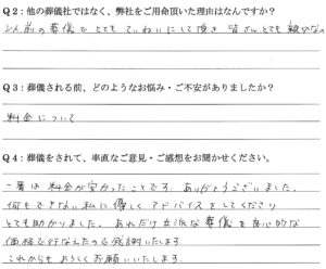 Q:他の葬儀社ではなく、弊社をご用命頂いた理由はなんですか。