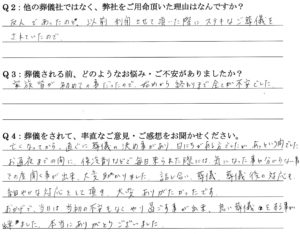 Q:他の葬儀社ではなく、弊社をご用命頂いた理由はなんですか。