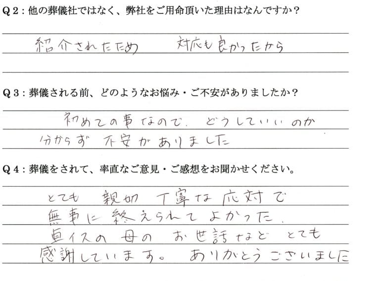 Q:他の葬儀社ではなく、弊社をご用命頂いた理由はなんですか。