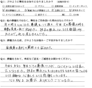 Q:他の葬儀社ではなく、弊社をご用命頂いた理由はなんですか。