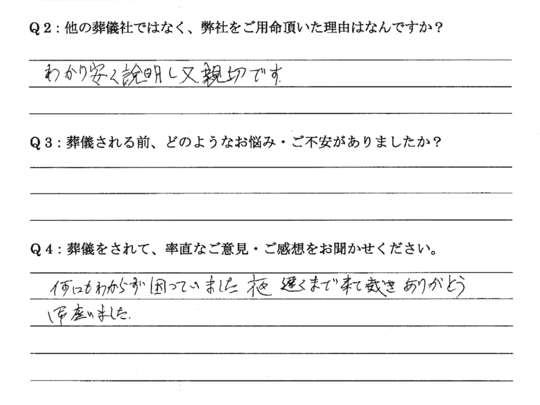 Q:他の葬儀社ではなく、弊社をご用命頂いた理由はなんですか。