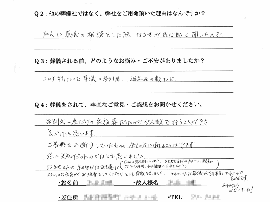 Q:他の葬儀社ではなく、弊社をご用命頂いた理由はなんですか。