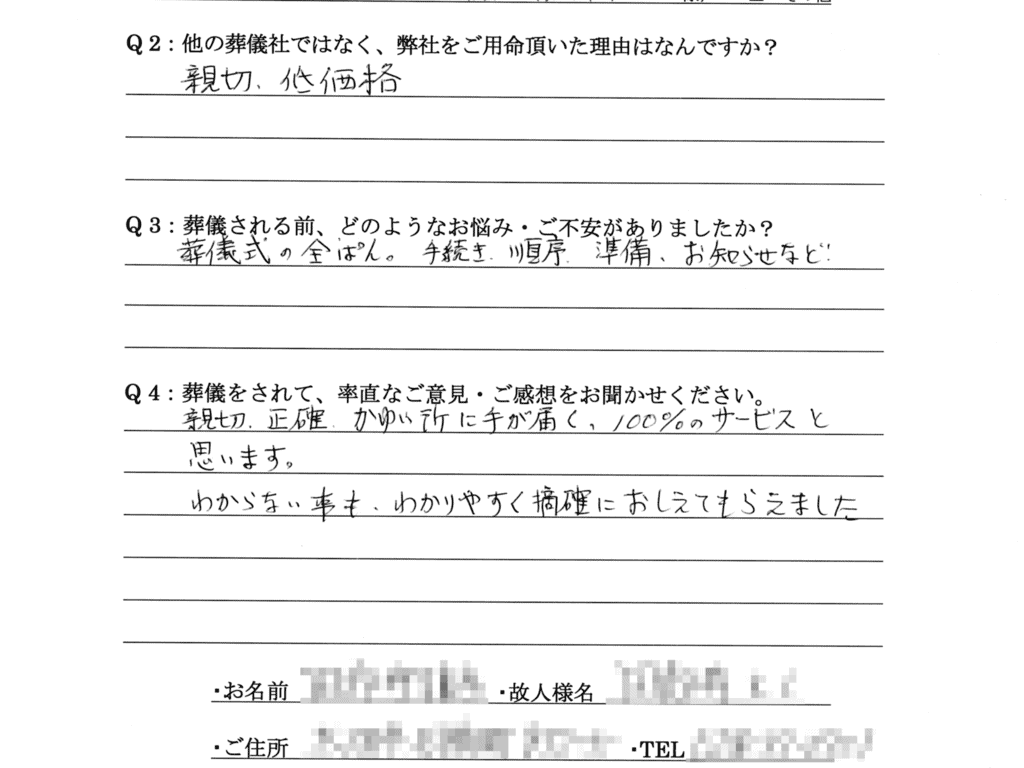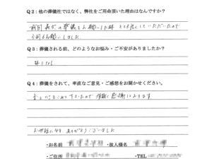 Q:他の葬儀社ではなく、弊社をご用命頂いた理由はなんですか。