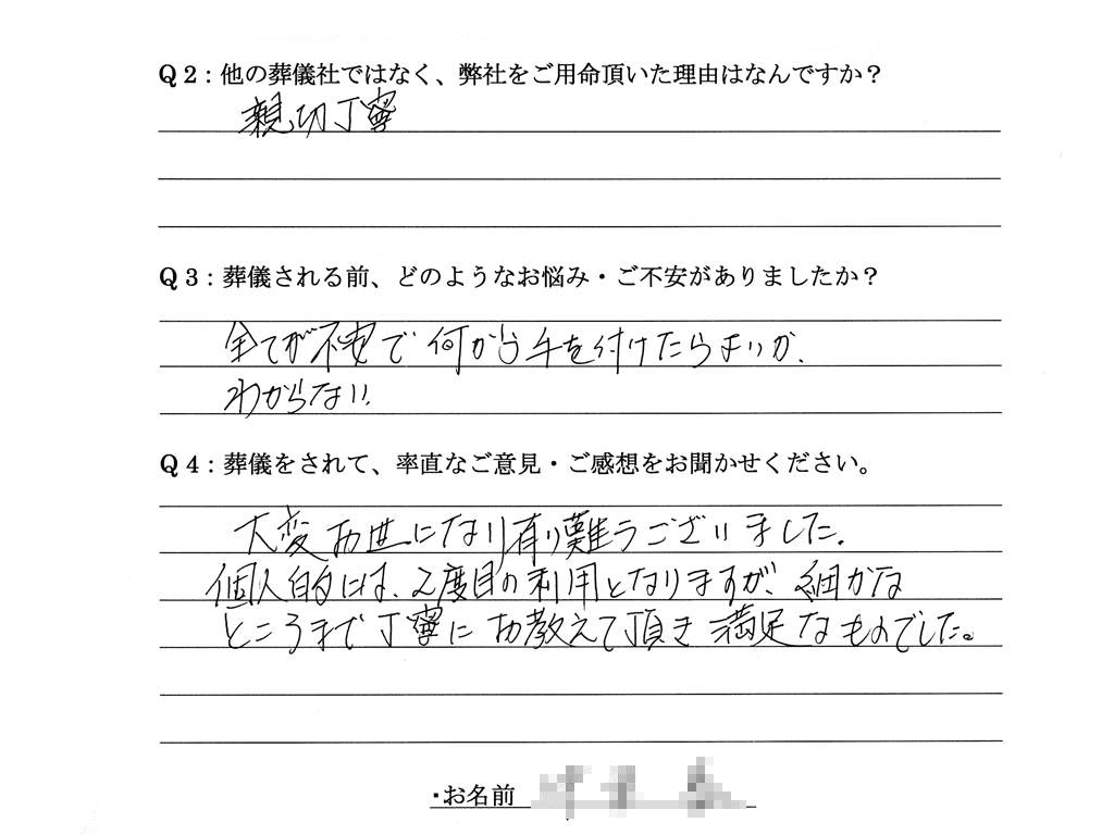 Q:他の葬儀社ではなく、弊社をご用命頂いた理由はなんですか。