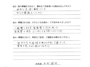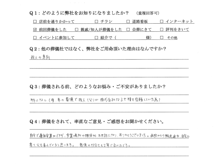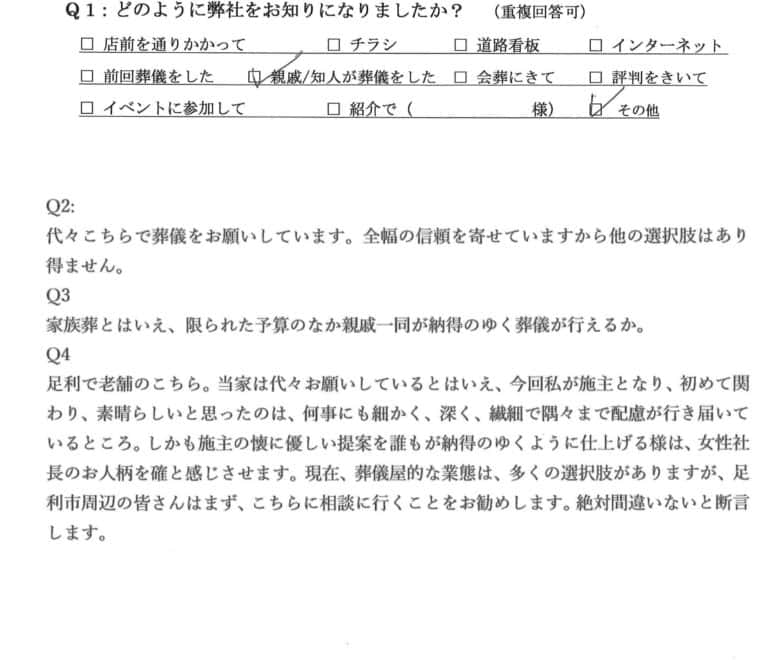 Q:他の葬儀社ではなく、弊社をご用命頂いた理由はなんですか。