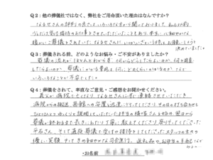 Q:他の葬儀社ではなく、弊社をご用命頂いた理由はなんですか。