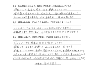 Q:葬儀をされて、率直なご意見・ご感想をお聞かせください。
