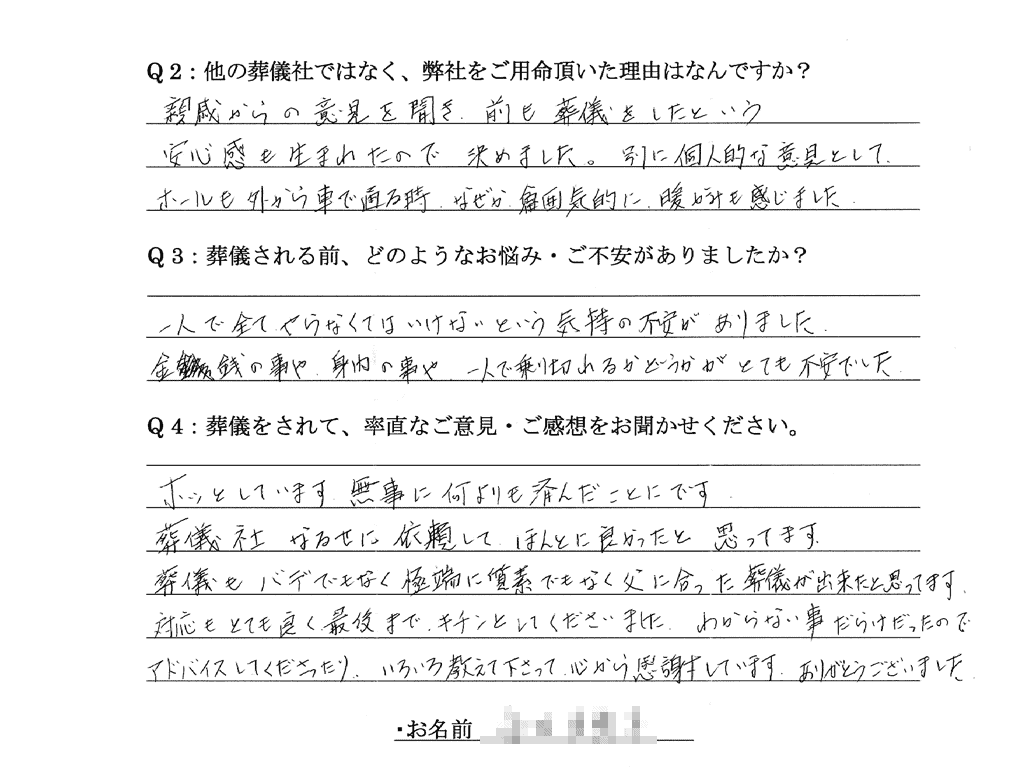 葬儀社なるせに依頼してほんとに良かったと思ってます。