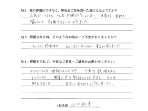 対応もとても良く最後までキチンとしてくださいました。わからない事だらけだったのでアドバイスしてくださったり、いろいろ教えて下さって心から感謝しています。ありがとうございました。