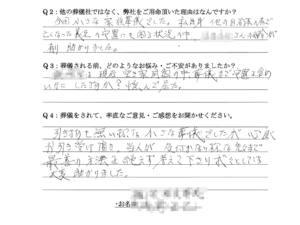 Q:他の葬儀社ではなく、弊社をご用命頂いた理由はなんですか。