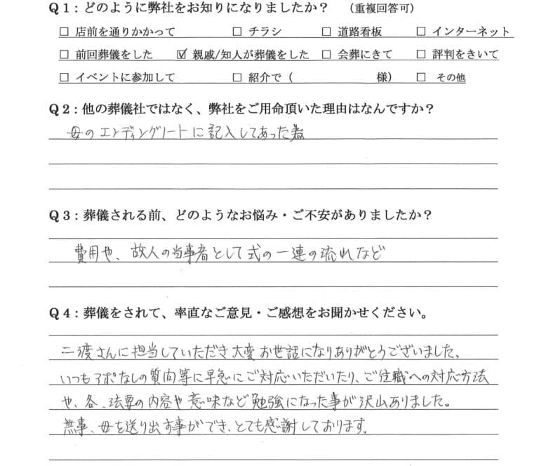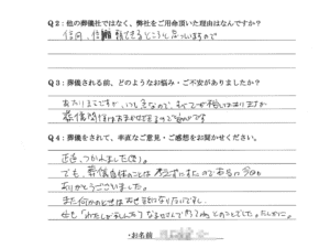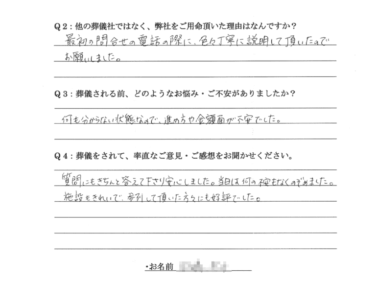 Q:他の葬儀社ではなく、弊社をご用命頂いた理由はなんですか。